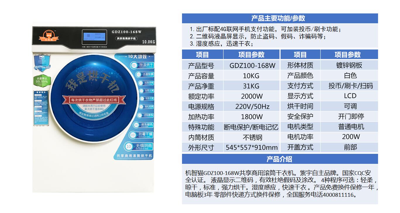 機智貓GDZ100-168W 十公斤滾筒商用烘干機