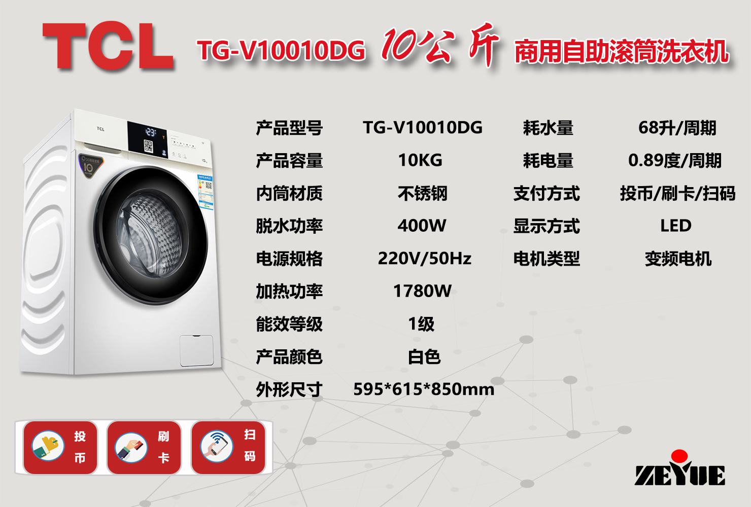TCL TG-V10010DG 10公斤商用自助滾筒洗衣機