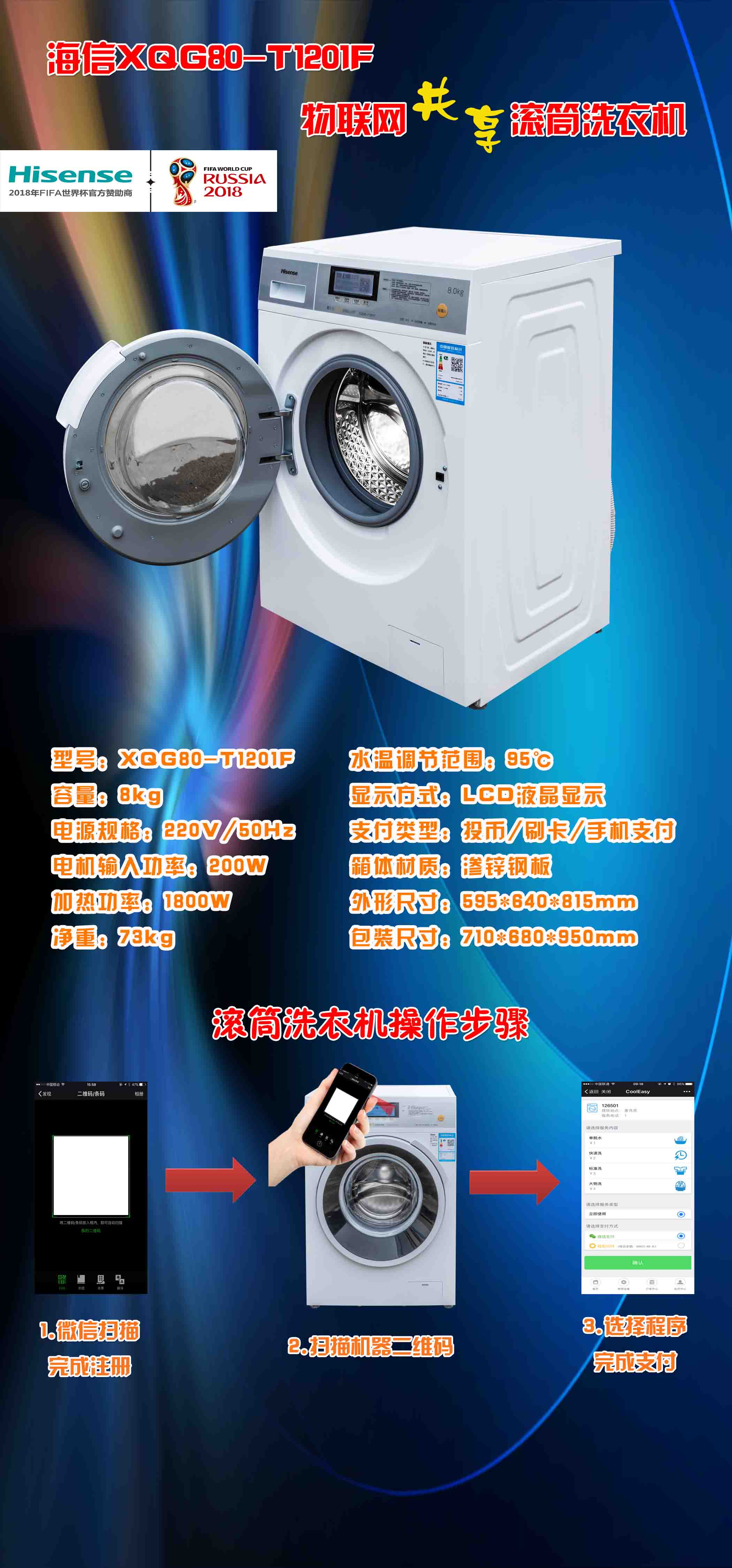 Hisense/海信 8公斤XQG80-T1201F共享商用滾筒洗衣機